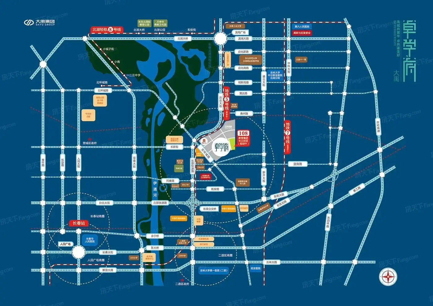 大禹·卓学府位于二道区远达大街与东环城路交会处,在售高层户型面积61-126㎡,起价6888元/㎡,预计2023年12月末一期交房。