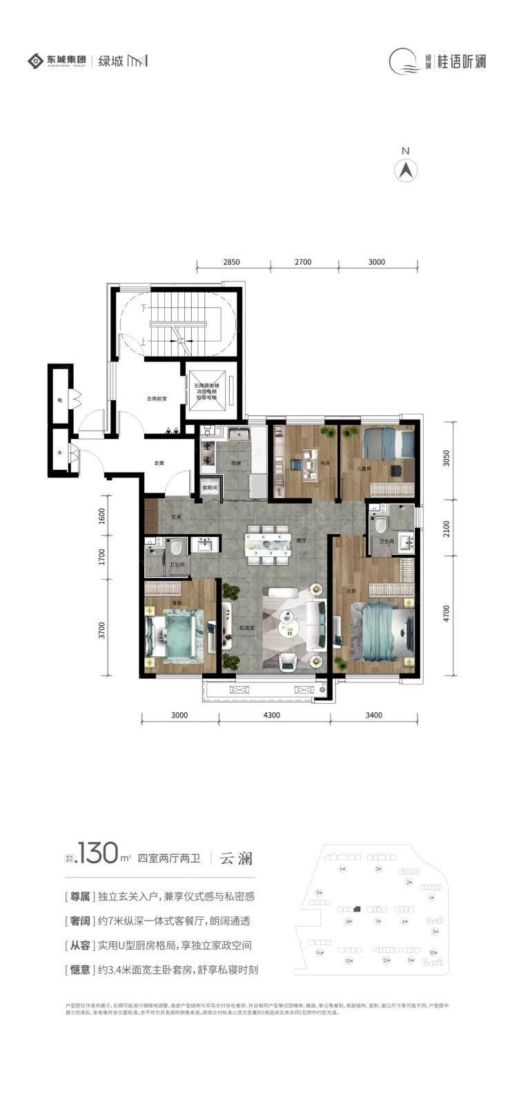 绿城桂语听澜位于二道区、东至临河街、西至滨河路、南至东新路,在售户型面积85㎡、110㎡、130㎡,带装修交付,均价12500元/㎡,预计2025年底交房。