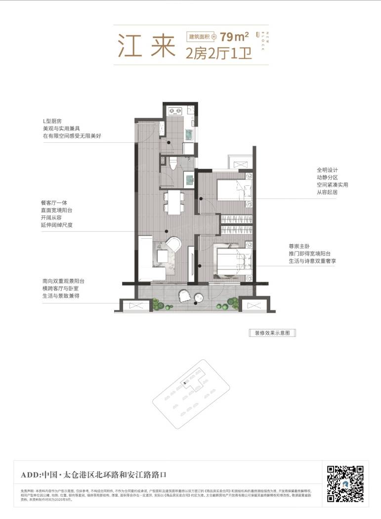 悠步江来是金辉集团斥巨资匠心打造的太仓市港区新一代品质标杆楼盘。项目坐落于北环路与平江路交界口,总占地面积约8.5万方,总建筑面积约21万方。规划高层、商业街区等多元业态。16幢住宅总层高为18-26层,主要面积段为78㎡2房、90㎡2+1房、95㎡2+1房,低单价、低总价,目前处价值洼地,为环沪价值投资首选优质楼盘。 作为金辉集团优步系大成之作,项目承袭优步2.0U+life价值体系,以改善级优质精研小户型,焕新城市标杆人居;以1.3万方商业街区打造新加坡式邻里中心。在景观设计上提取海洋元素,结合现代东