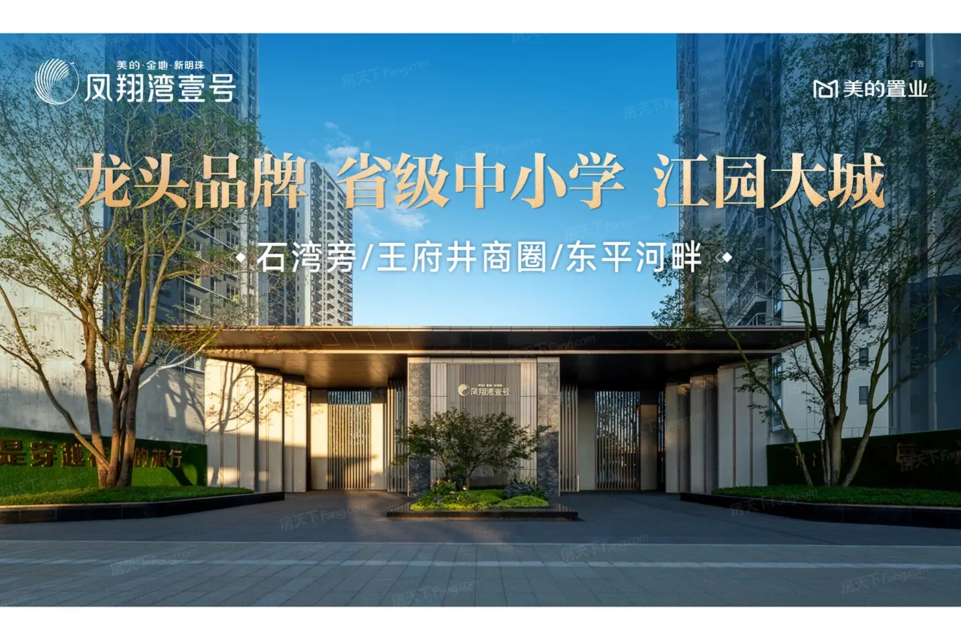 美的·金地·新明珠·凤翔湾壹号:魁奇路上东平河旁,约32万㎡江园大城。项目在售二期8、9座高层住宅产品,98-142㎡江园准现房,2梯4户设计,均价15000元/㎡,带装修发售,使用率超94%,全城热销中。凤翔湾壹号,美的置业本地龙头品牌、12年老牌省一级中小...