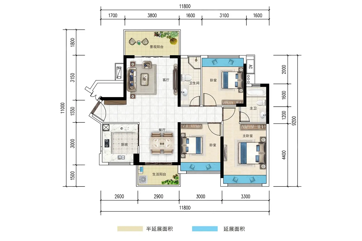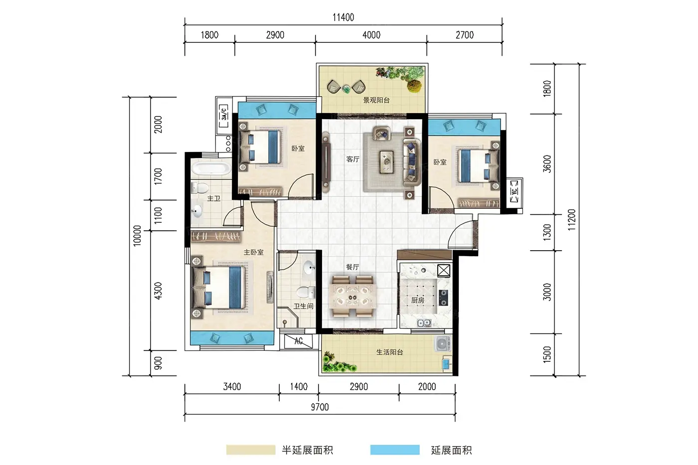 • 3室2厅1厨2卫
