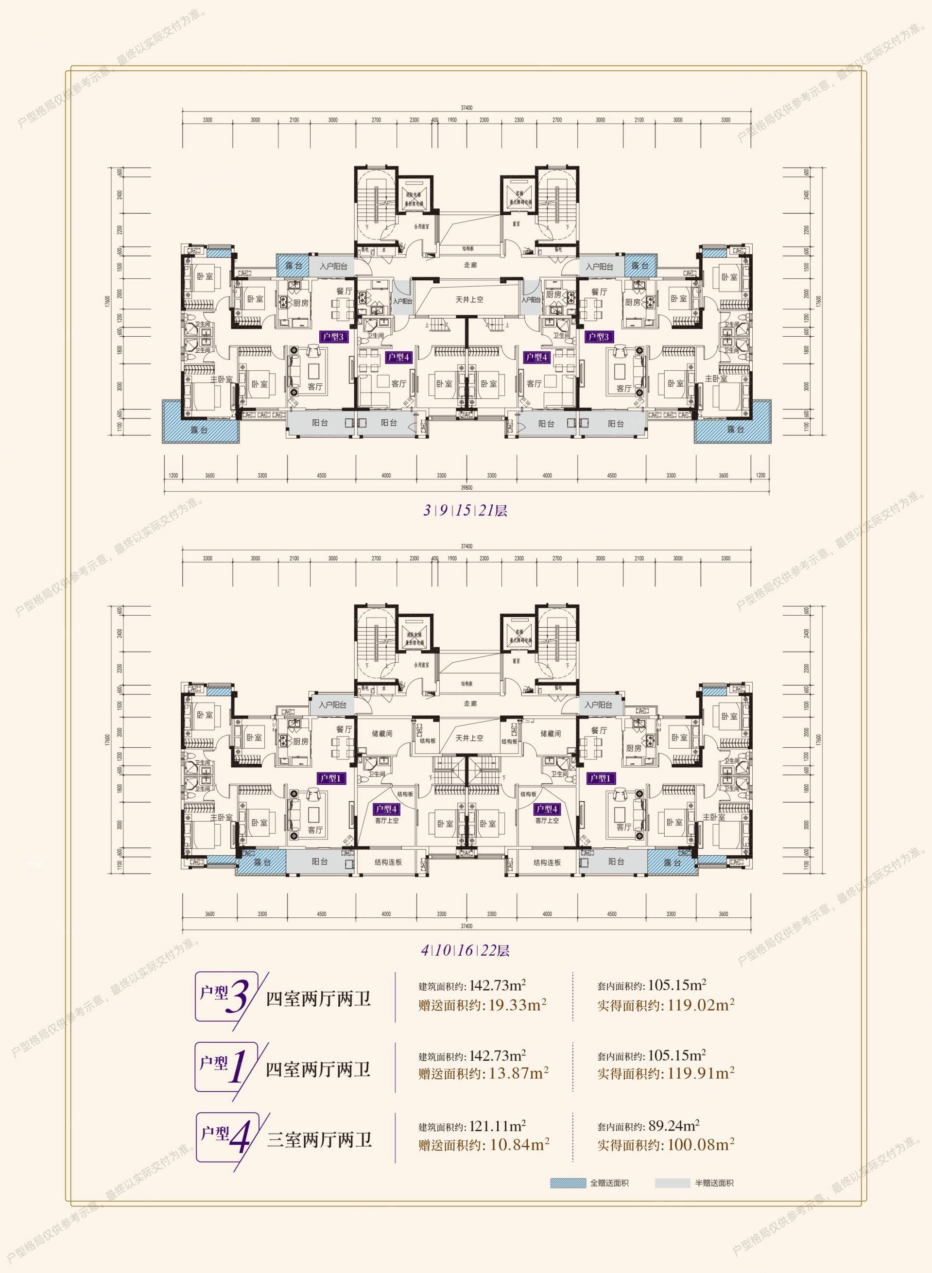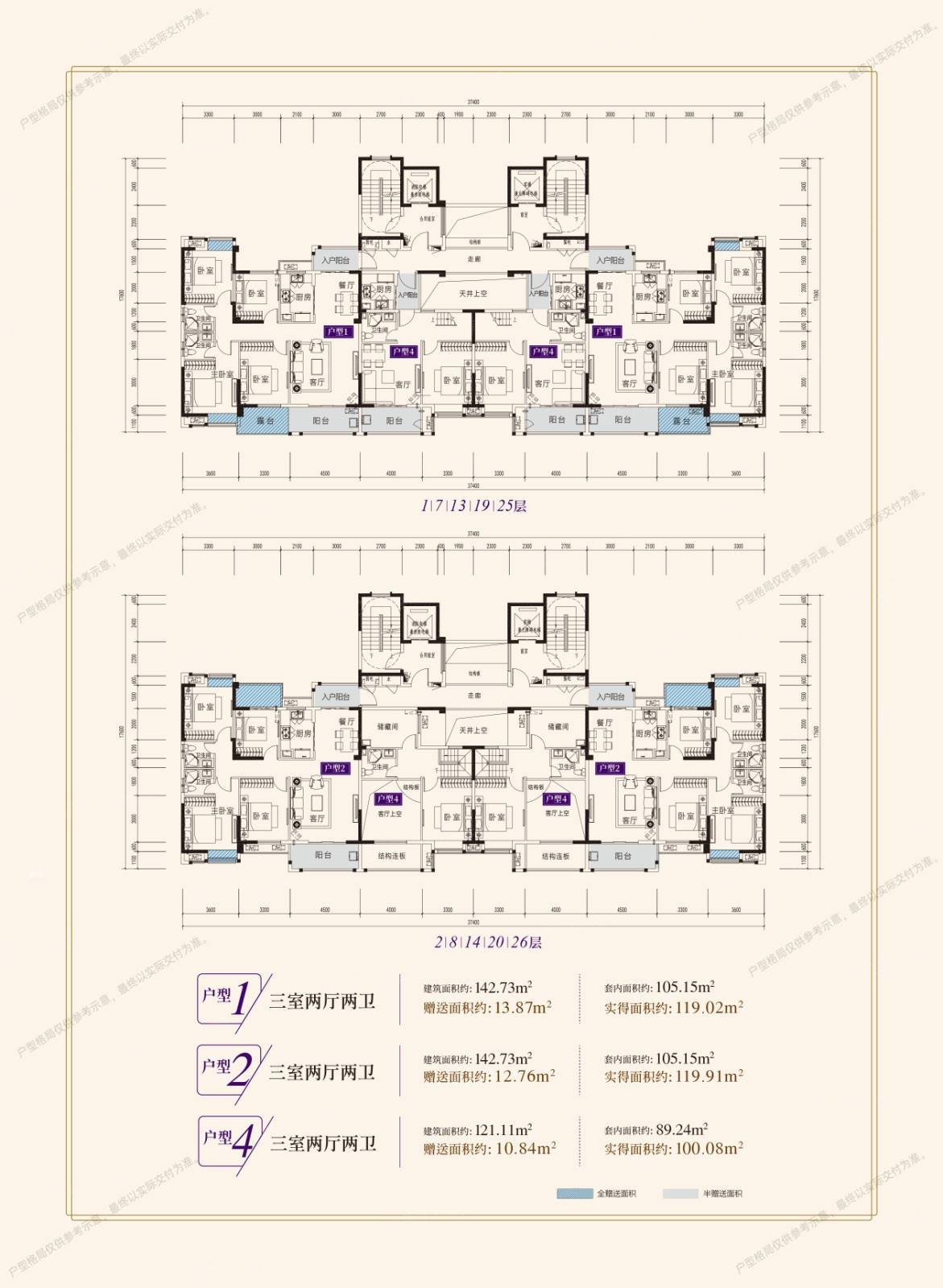 | 楼层状况: 项目19栋高层均为2梯4户总层数26层的第四代景观住宅 |