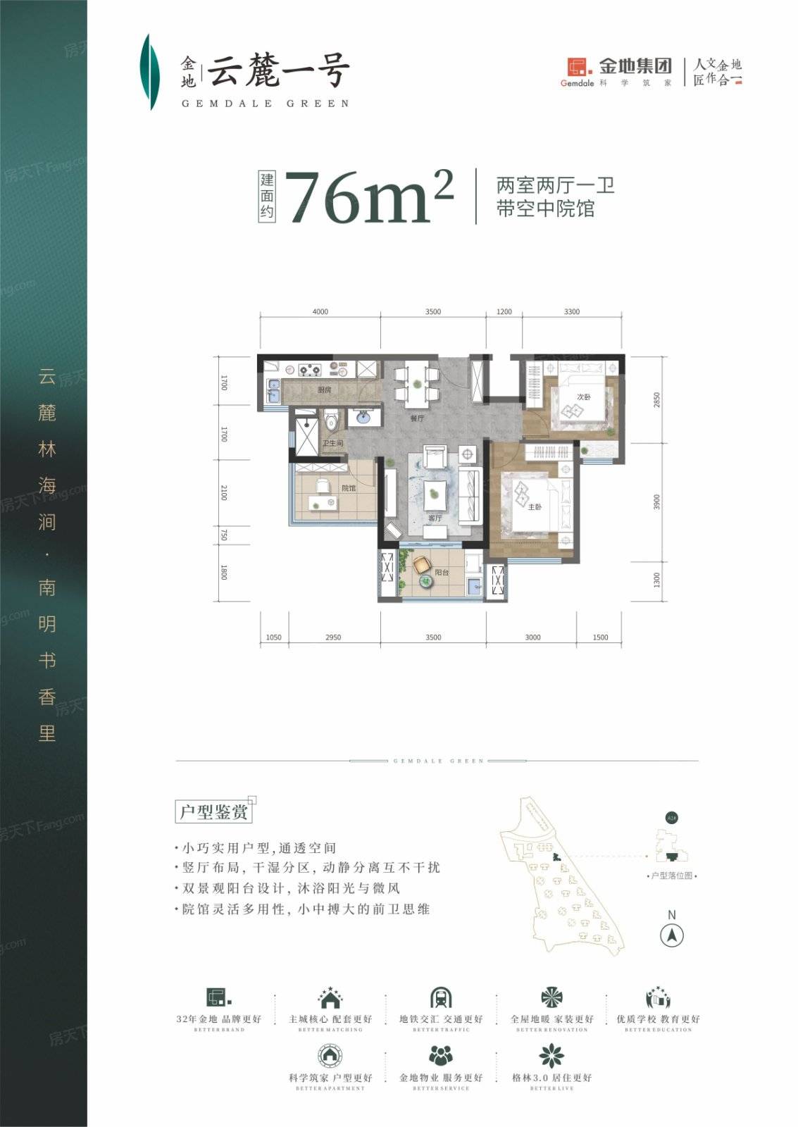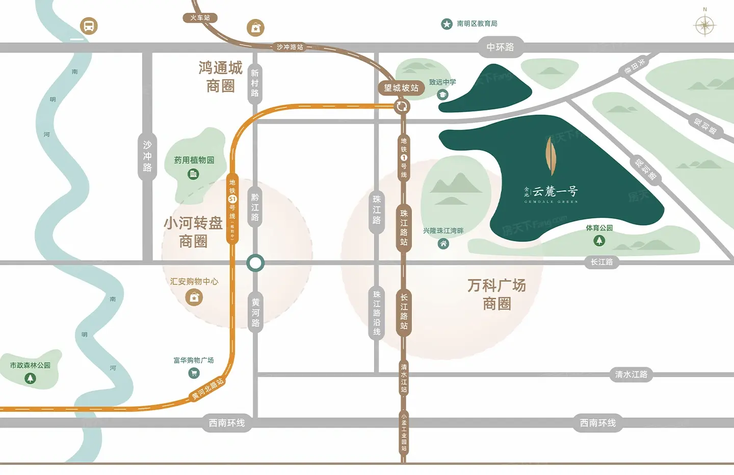 贵阳金地云麓一号9500元/平方米。贵阳市南明区地铁1号线望城坡地铁站旁。共4032户。容积率3.3。带装修交房。贵阳金地云麓一号物业费:2.35元/㎡/月。绿化率30%。项目为高层板楼。在售户型有:76平-120平2居-4居。敬请关注。贵阳金地云麓一号售楼处...