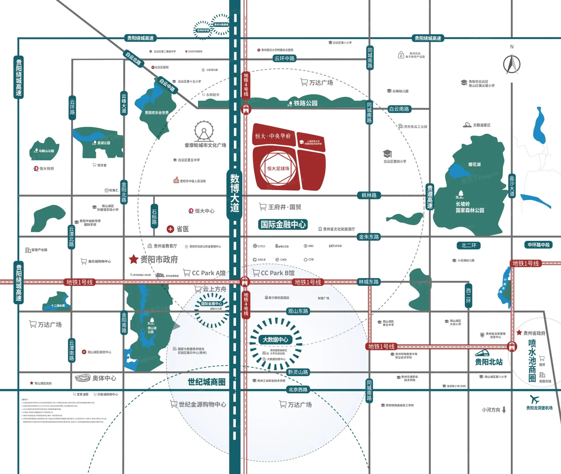 恒大中央华府价格待定。绿化率33%。贵阳市观山湖区长岭北路与枫林路交叉路口西北侧。共3231户。容积率3。恒大中央华府项目为高层板塔结合。“四纵四横”立体交通路网,1高速2地铁8公交,贵阳高铁北站,66路、230路、257路、231路、232路、233路、观山...