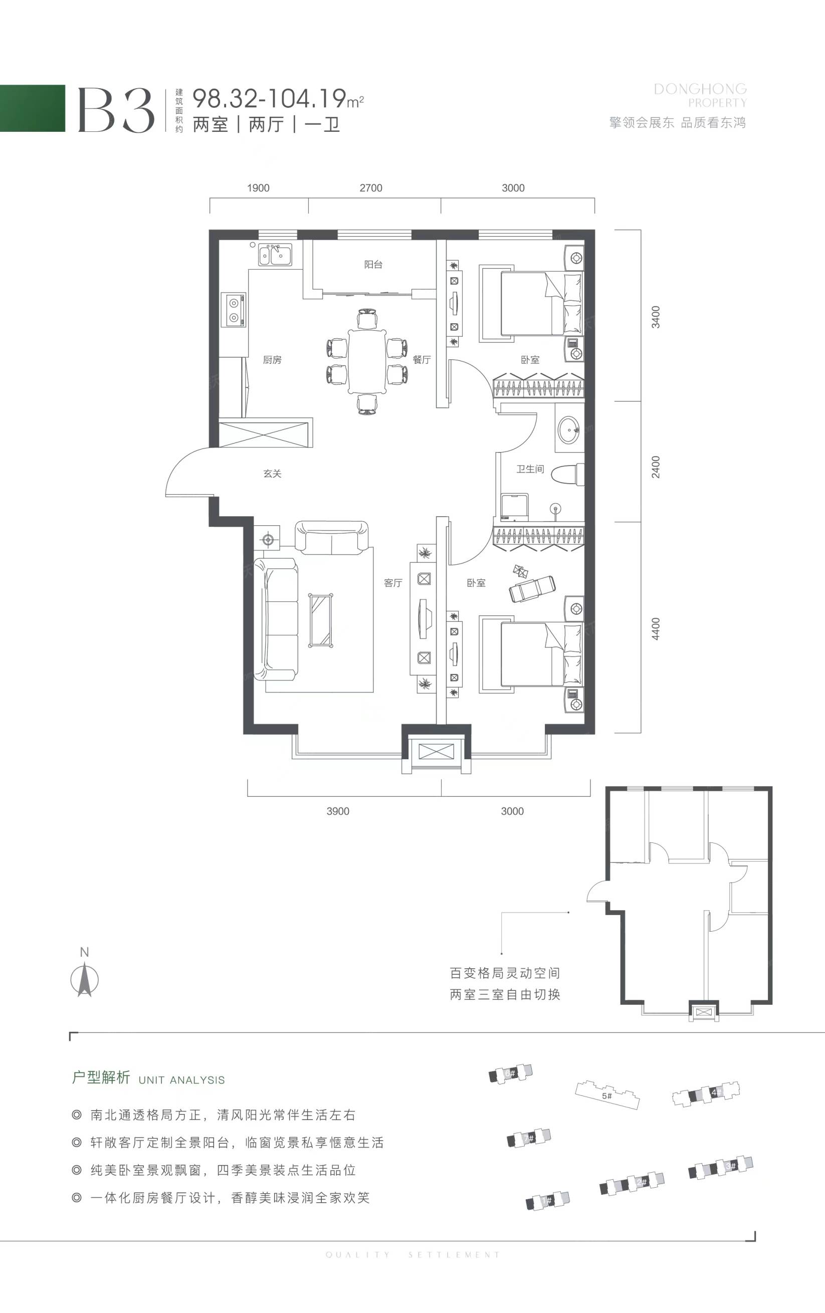 东鸿·蝶翠里南向大三居火热加推,5#楼双景楼座,建筑面积约128平米三室新品,三开间朝南,客厅开间约4.2米,双卫设计,奢适主卧套房。住宅参考均价8500元/平米,户型建筑面积59-147平米,加1万送私人定制全套厨卫家电家私,支持省市公积金和农垦公积金贷款。...