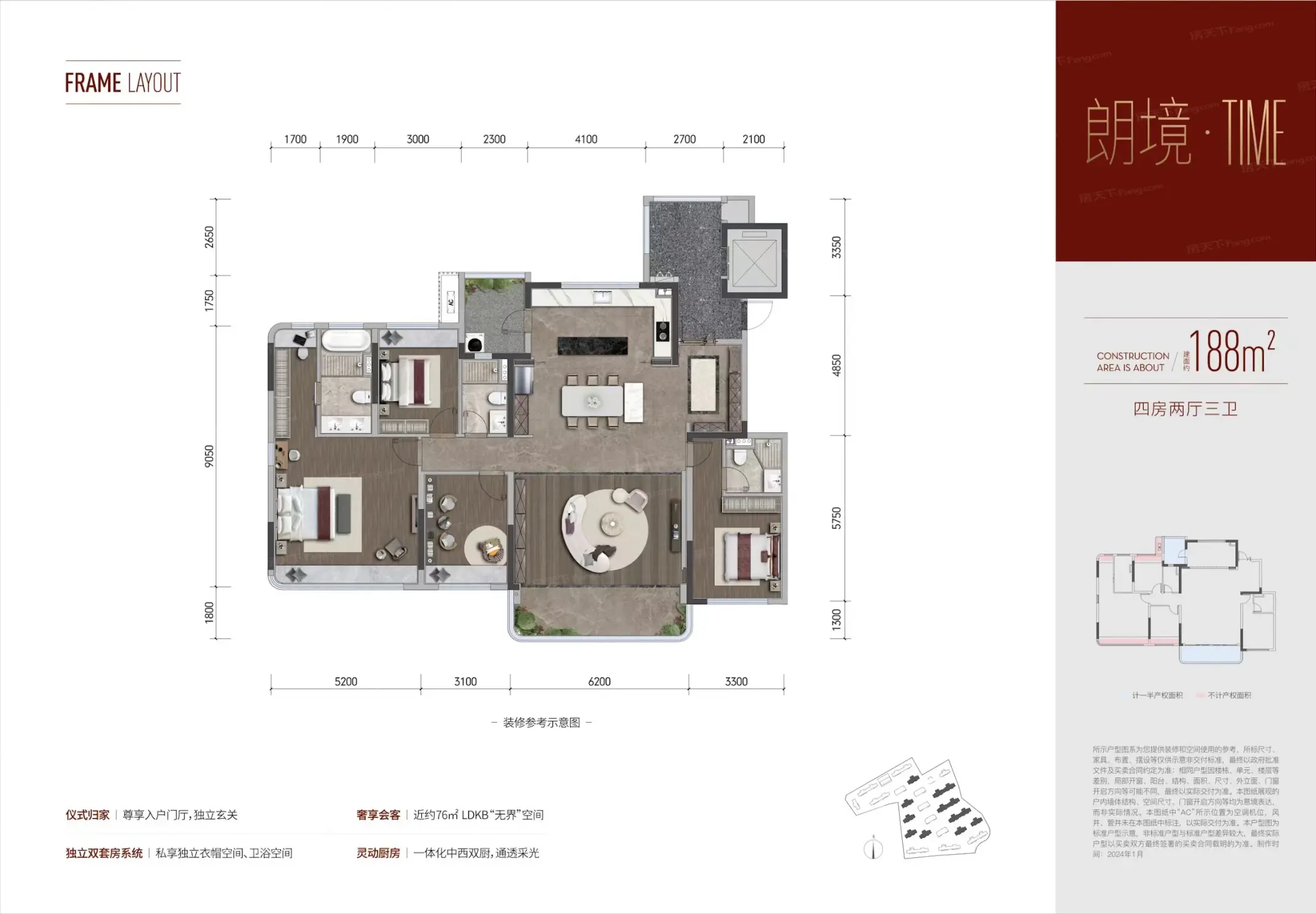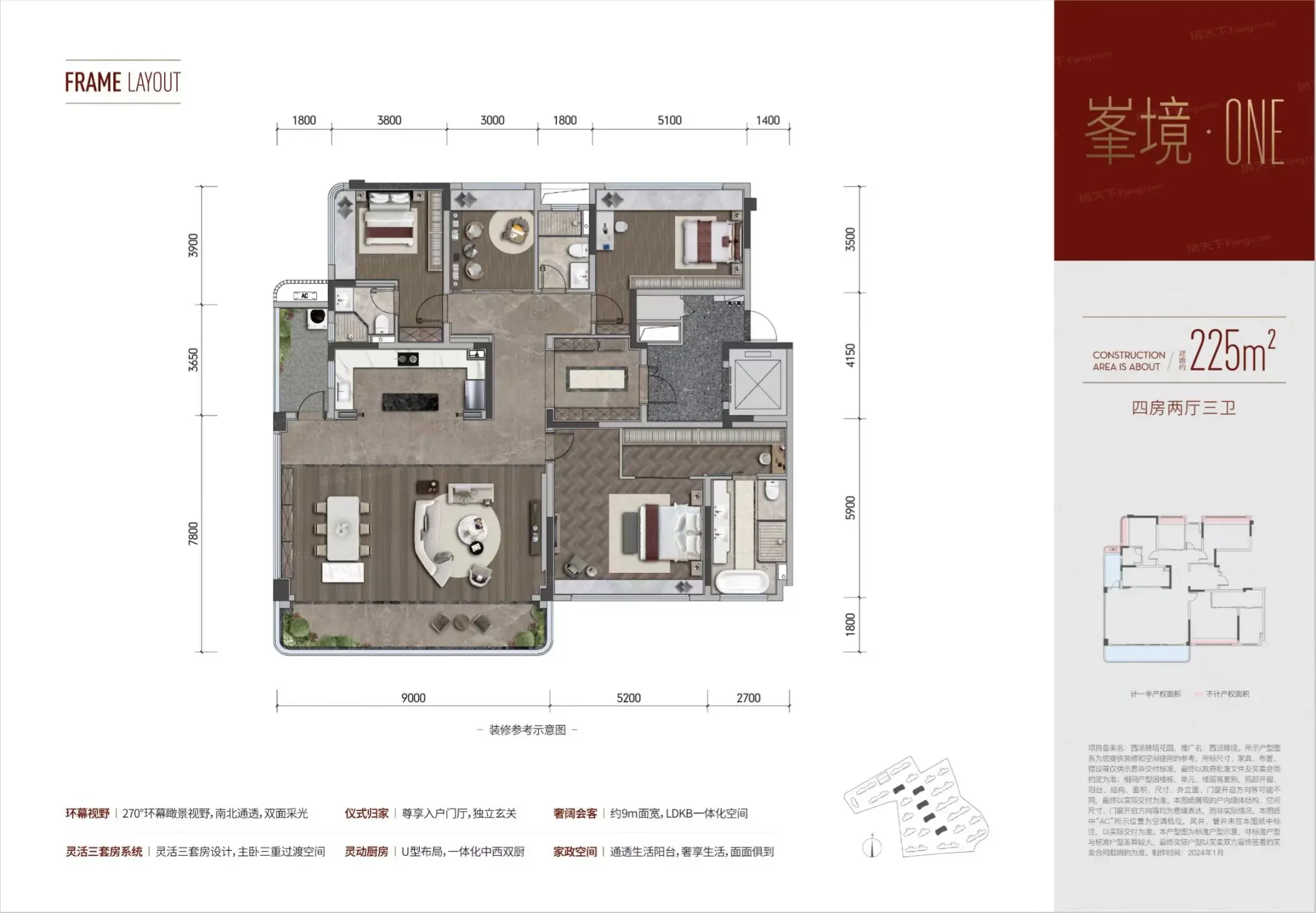 | 楼层状况: 共24栋818户,2T2,9-13F,户型约143-225㎡ |