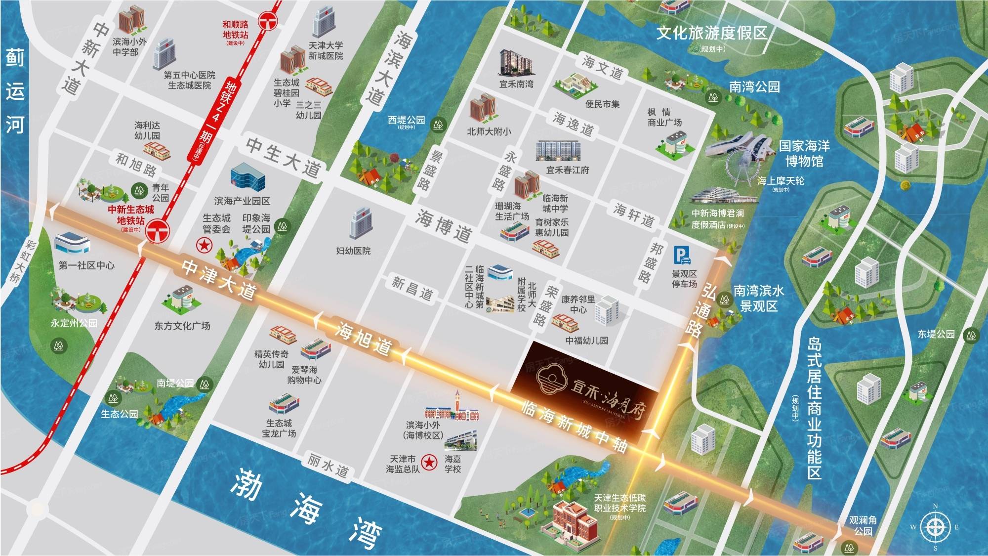 宜禾海月府项目临售中心已于7月20日已开放,临售中心位于天津市滨海新区中新生态城海逸道与永盛路交口(原宜禾春江府营销中心),同时项目万达外展已正式开放。宜禾海月府项目位于滨海新区临海新城板块内,东至弘通路,南至海旭道,西至荣盛路,北至新昌道。(以上信息仅供参考...