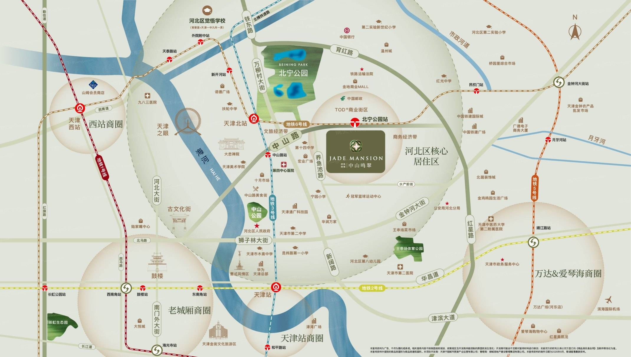 津铁绿城·中山鸣翠共规划6栋楼,其中洋房8层,小高16层,高层25-26层到顶。项目位于河北区中山北路与养鱼池路交口东南侧,北侧即地铁6号线北宁公园站,出行便利。