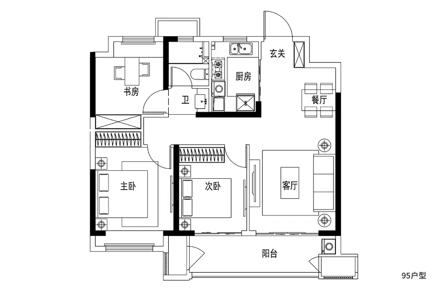 • 3室2厅1厨1卫