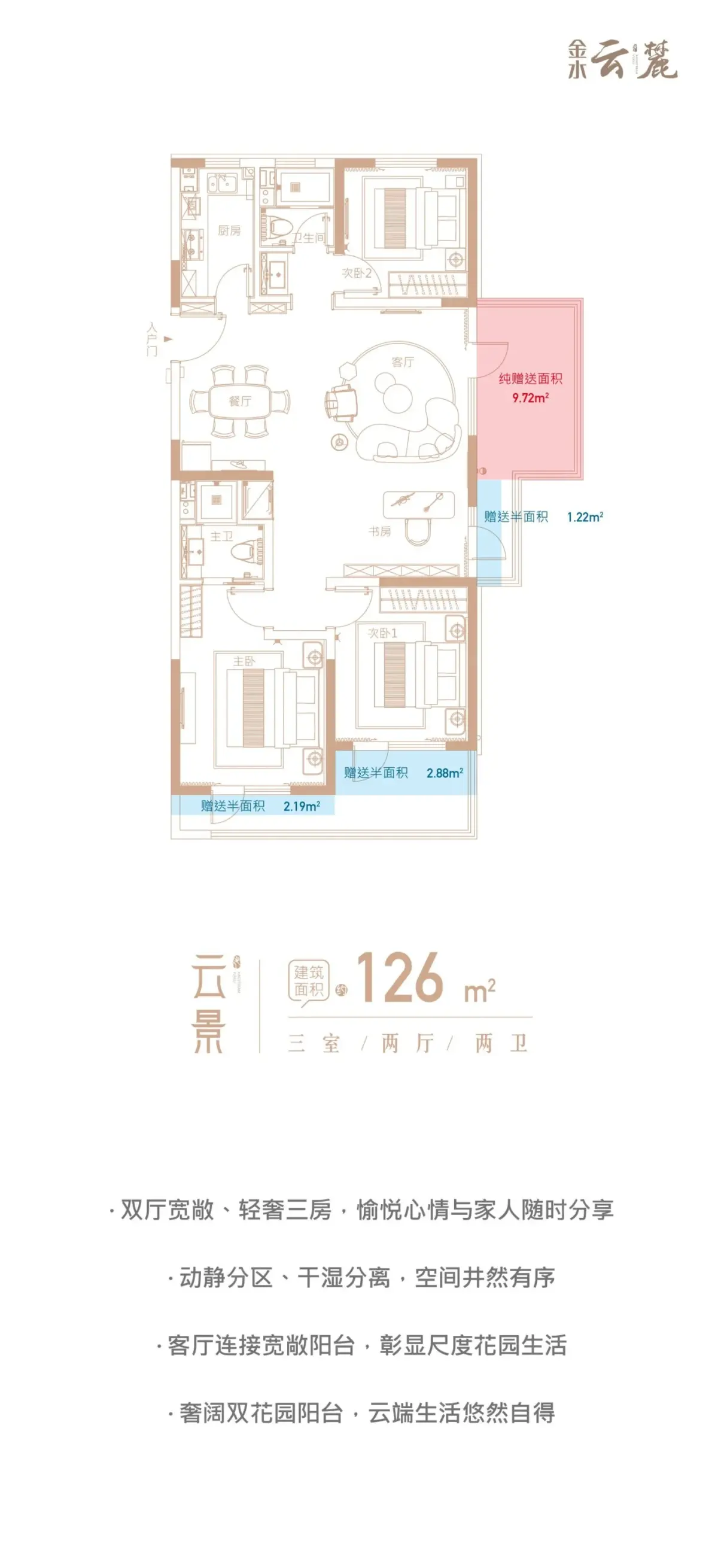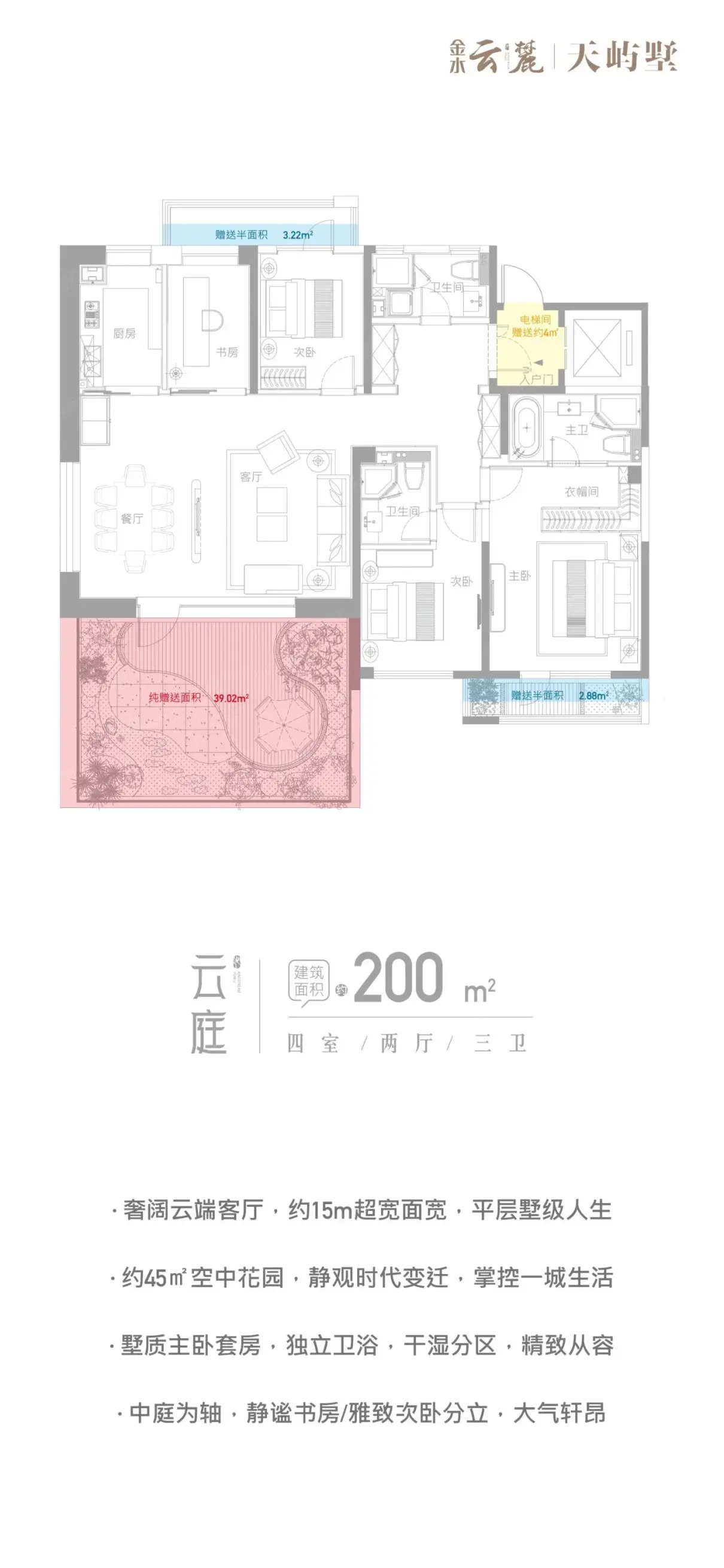 金水·云麓在售户型建面约136平、171平、200平,均价35000元/平。无加推,剩余房源较少,以上信息仅供参考,详情请咨询售楼处。