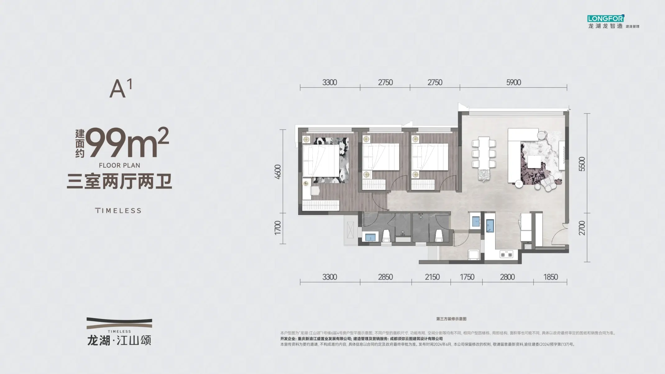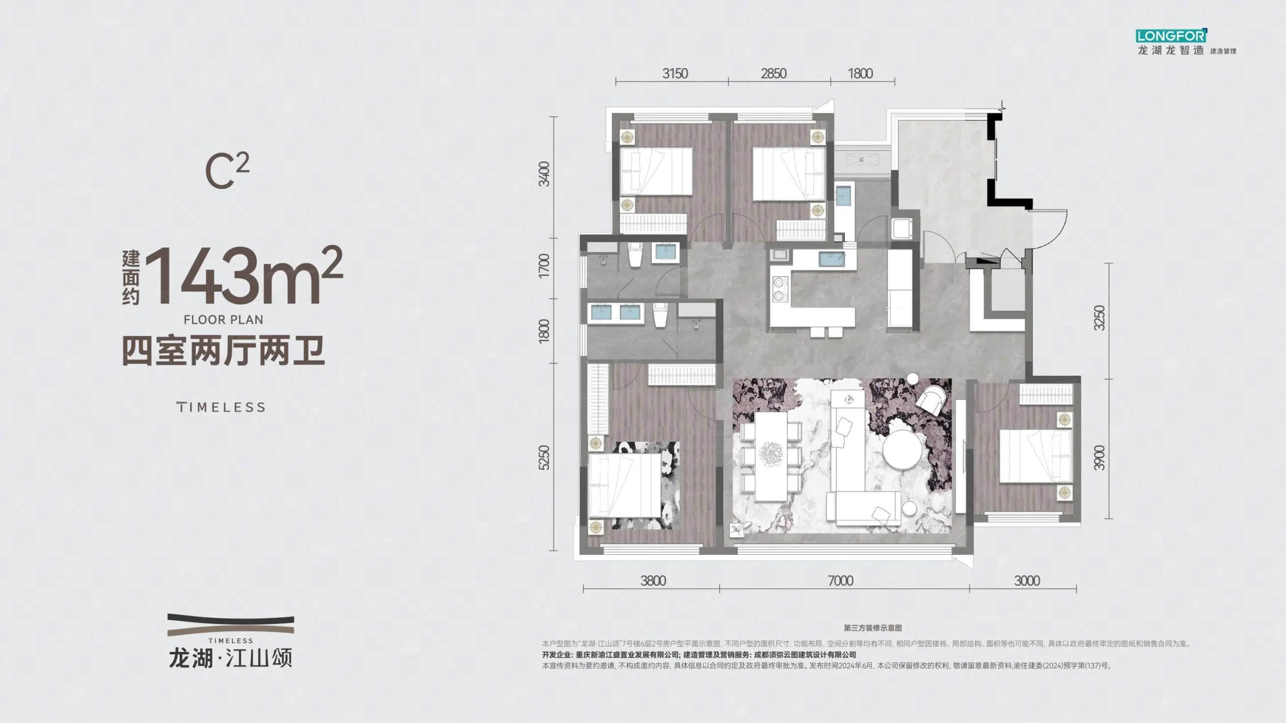 龙湖江山颂在售精装小高层,建面均价约为22000元/㎡,建面99-143㎡户型,建面约143㎡大四房总价295万元/套起,具体一房一价。