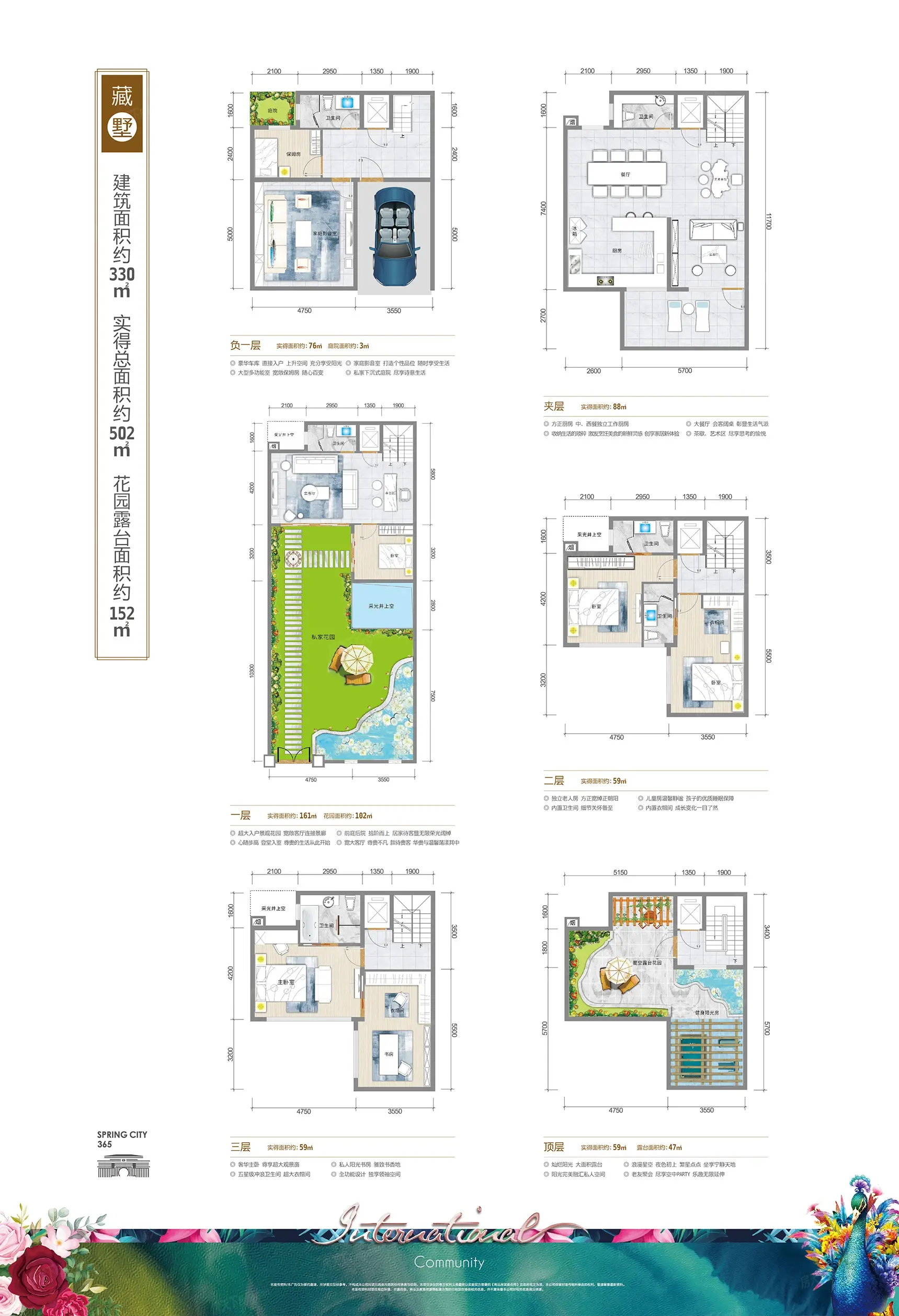 楼层状况: 高层20-32层,叠墅4层,别墅3层