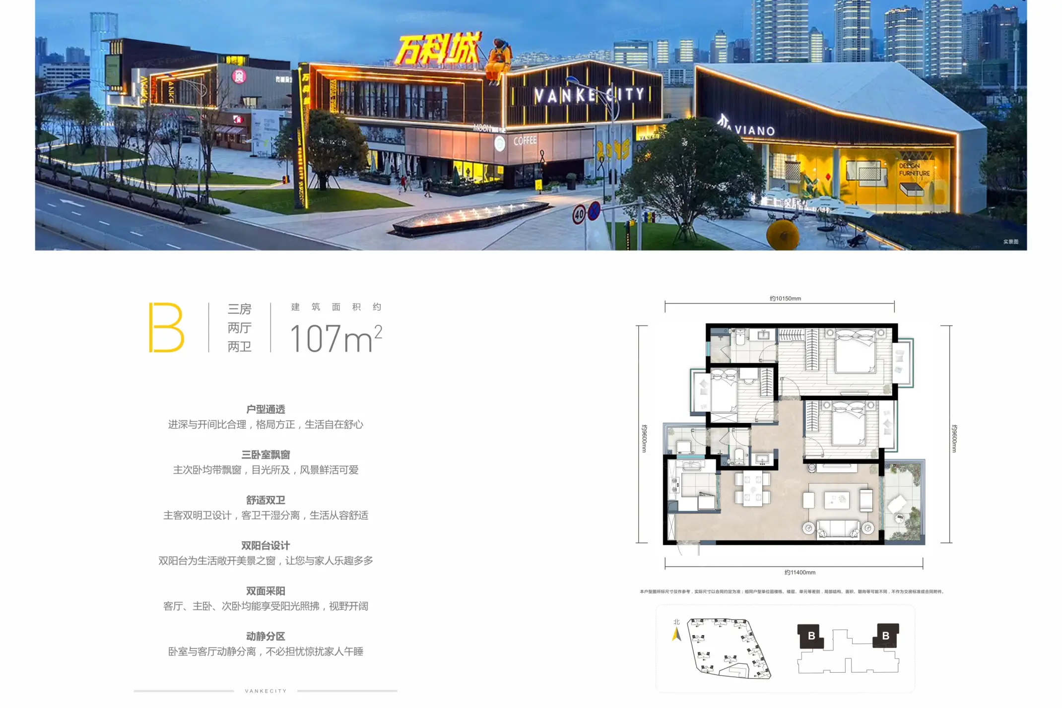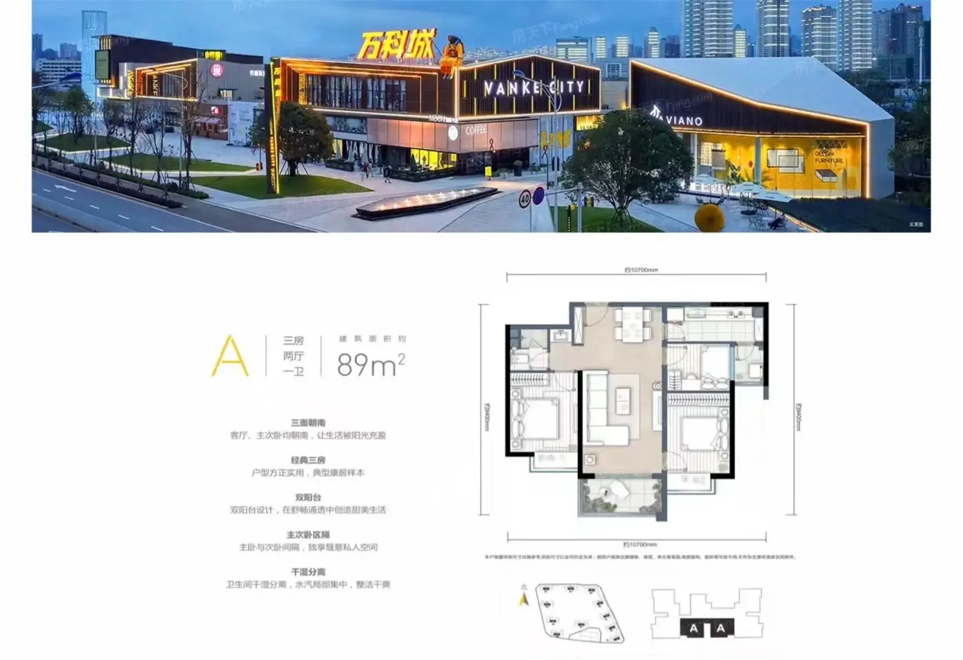 万科城六期5#6#在售;5#在售户型建面为108㎡、118㎡、135㎡,价格约16800-17000元/㎡;6#在售户型建面约143㎡、165㎡,均价约18000元/㎡