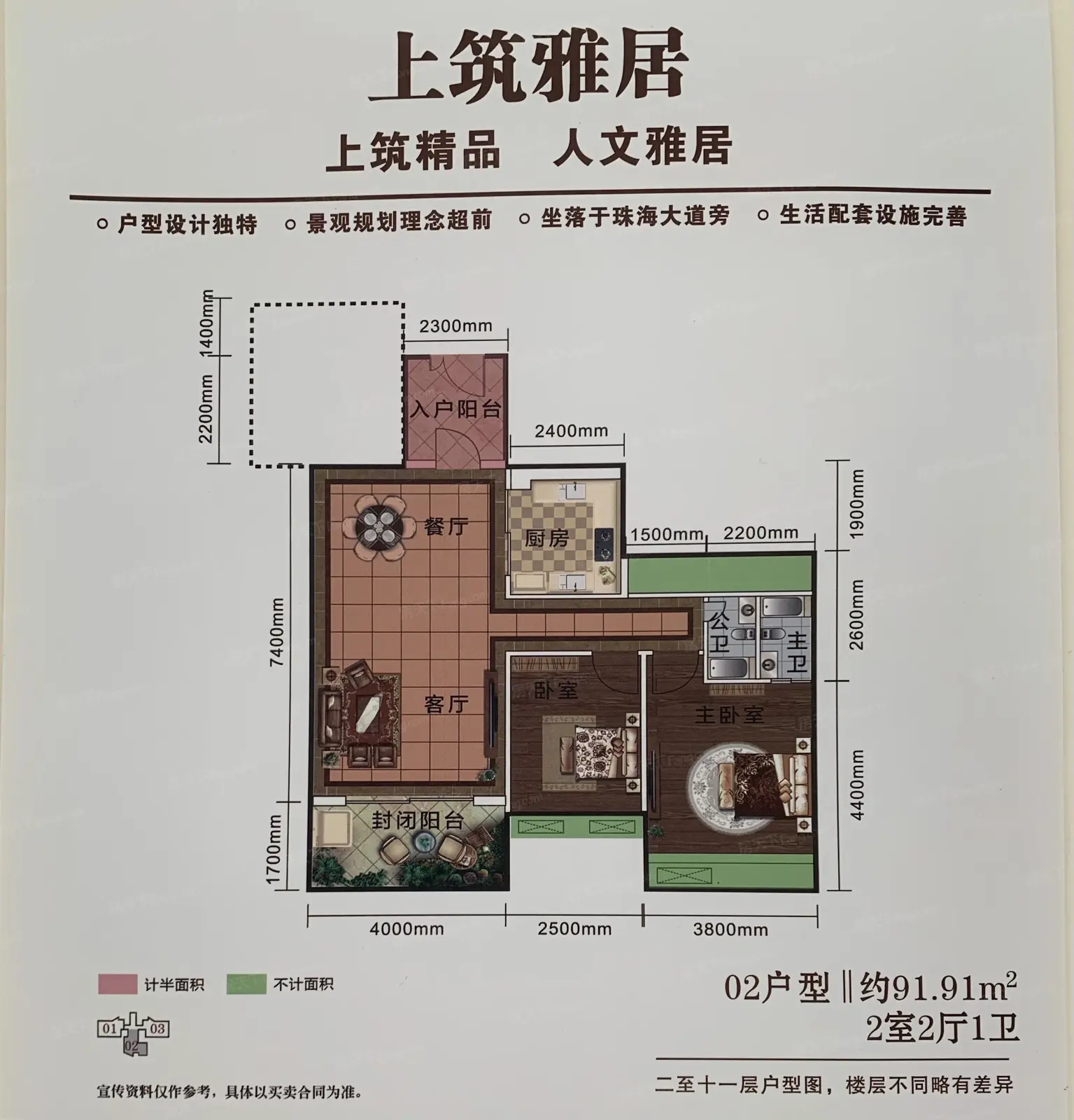 | 楼层状况: 小区共4栋,为封闭小区,共114户,均为1梯3户,其中为2个户型,91平米2+1房,101平米3+1房,户型采光,通风效果绝佳 |