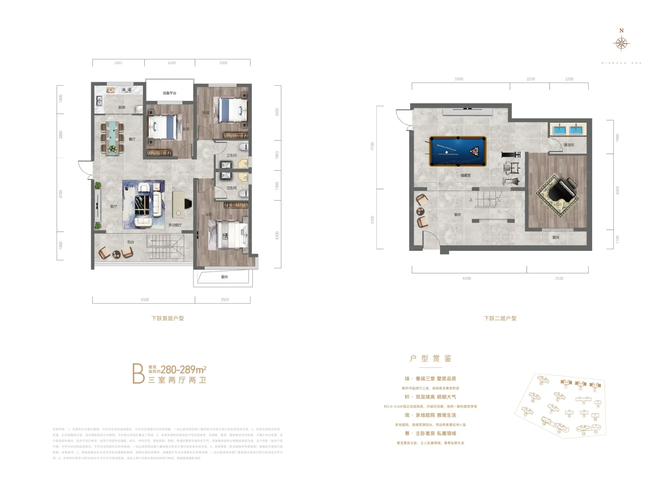 荣盛首府目前项目在售产品为跃墅和平墅,其他产品均已售罄。云端跃墅产品,面积198-214㎡,价格19800元/㎡,毛坯交;平墅产品,面积265㎡,价格17800元/㎡,毛坯交付。
