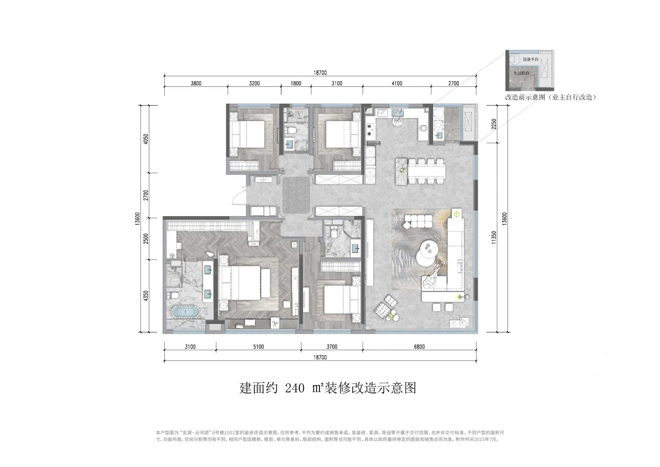 龙湖·云河颂在售建面约143平、194平、240平毛坯住宅,143平均价11800元/平,193平均价12800元/平,240平总价390万仅剩最后一套现房,位于2#3#。一房一价,具体请以案场为准。