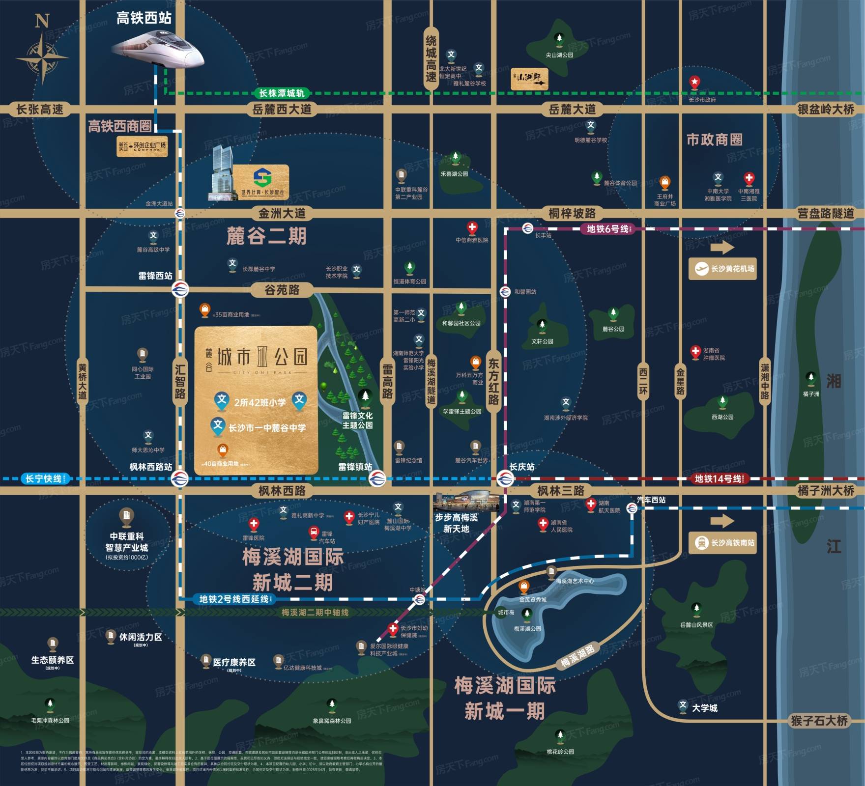 麓谷城市公园在售建面约102平、122平、138平新规产品,均价10500元/平。另项目一期在售少量建面约106-170㎡毛坯现房,均价9800元/平。