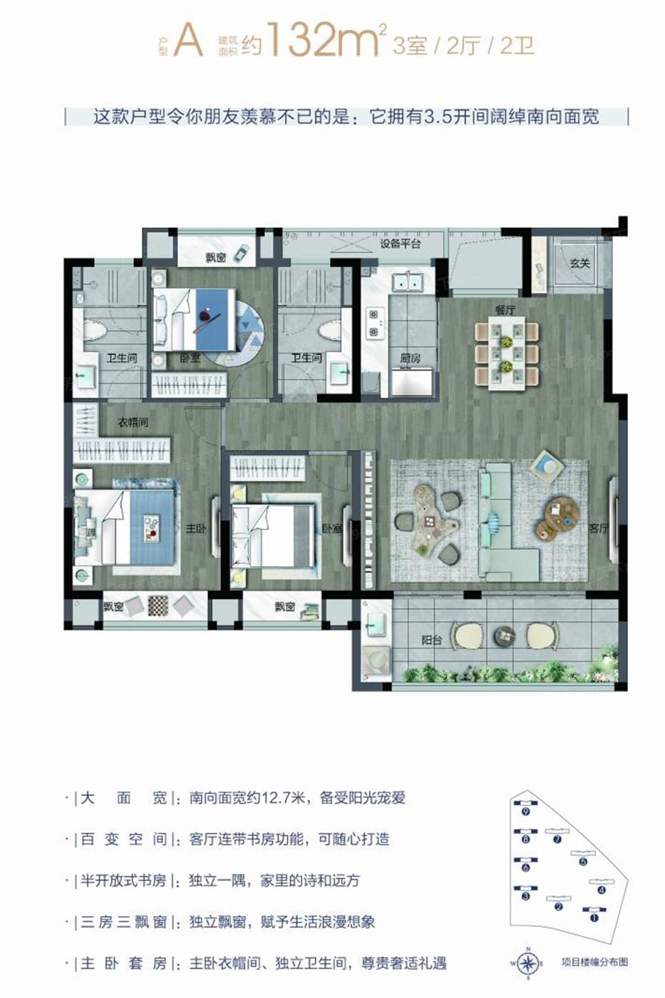 | 楼层状况: 高层9栋876户,建筑面积116-143㎡ |