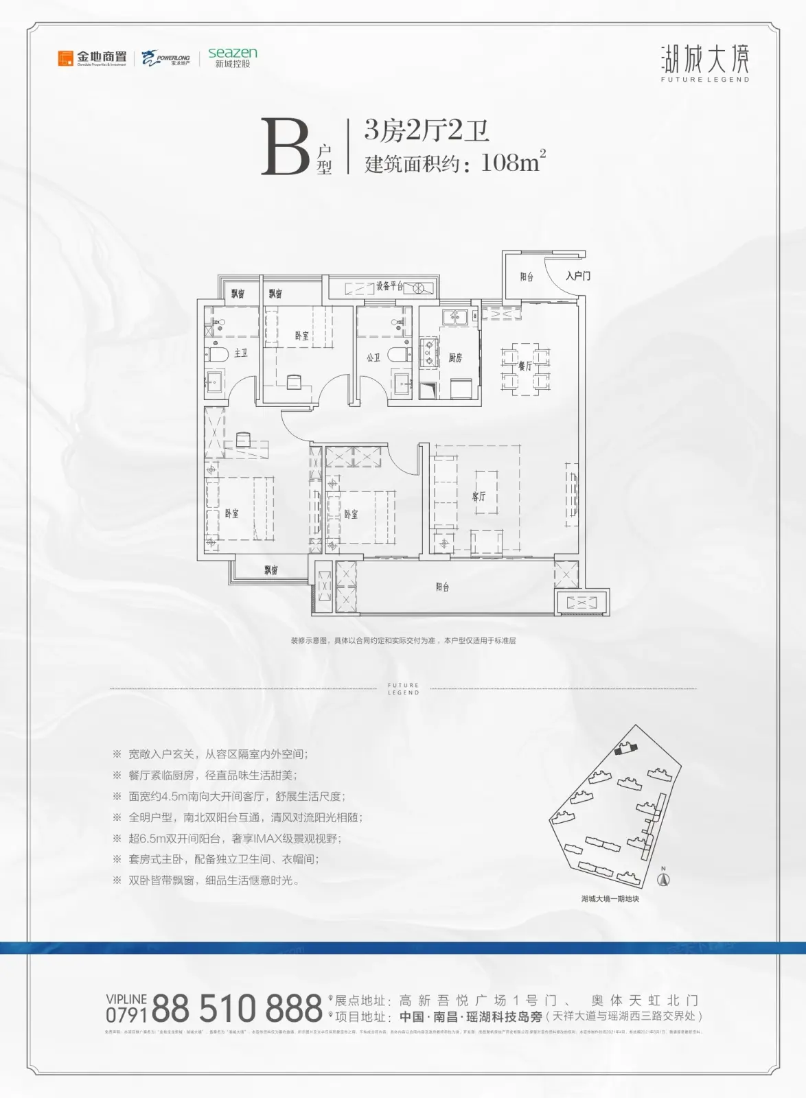 【湖城大境金地广场】高新正轴、师大旁、60万梦幻综合体!就读师大附中瑶湖校区!二期目前在售高层5、7、8、12、13#,24-27F,2梯4户,户型建面约93、106、132㎡,均价13000元/㎡。高层物业费3.15元/㎡·月,洋房物业费3.45元/㎡·月,...