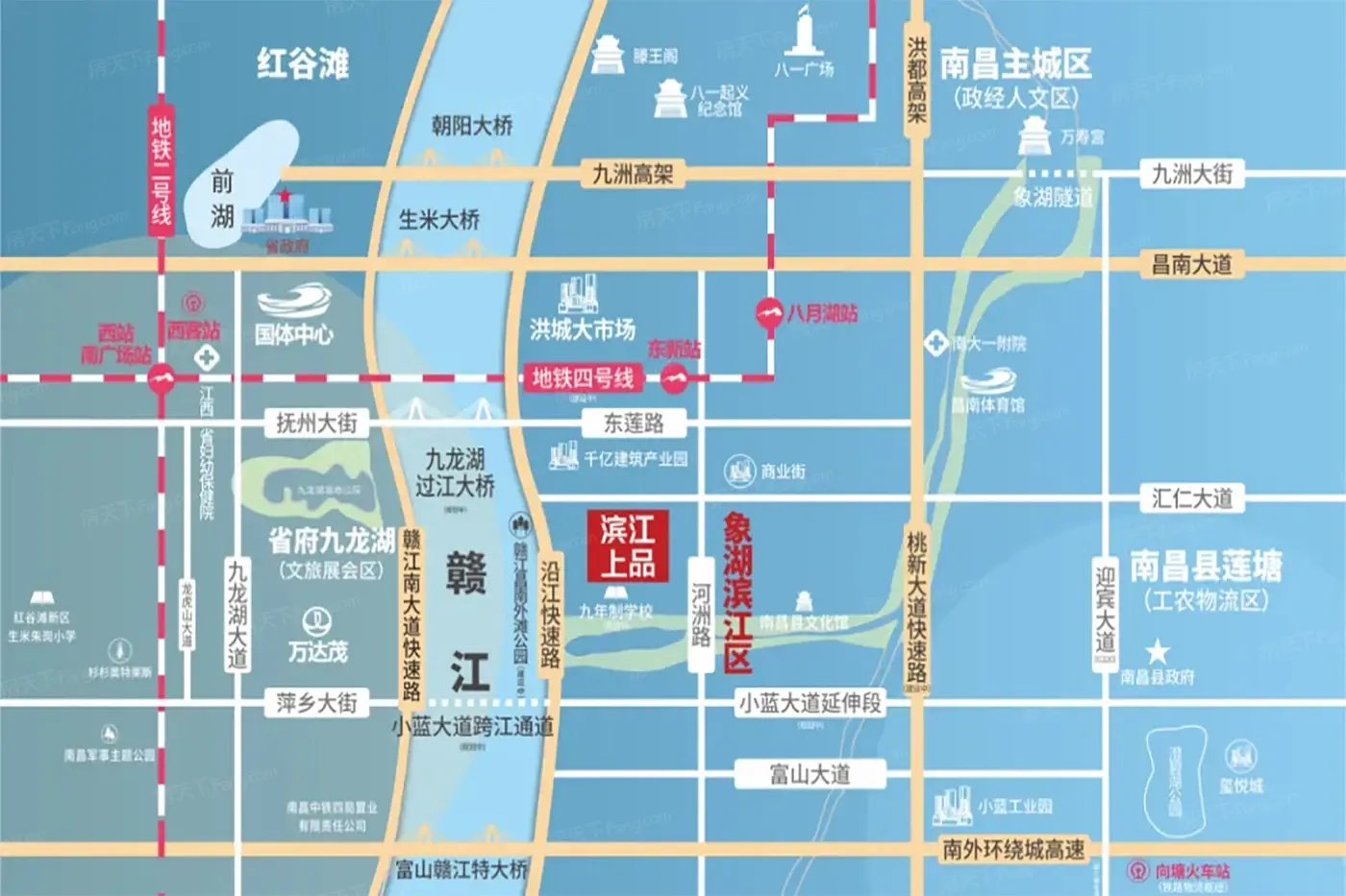 【滨江上品】国企现房!江景华宅,赣江头排,滨江中轴!高层现房、准现房在售,目前在售6、7、8、9、10、19#,30-34F,2梯4户,户型建面约89、103、120、140㎡,带装修均价9000元/㎡,物业费用2.78元/㎡·月。【滨江上品】位于南昌县赣江东...