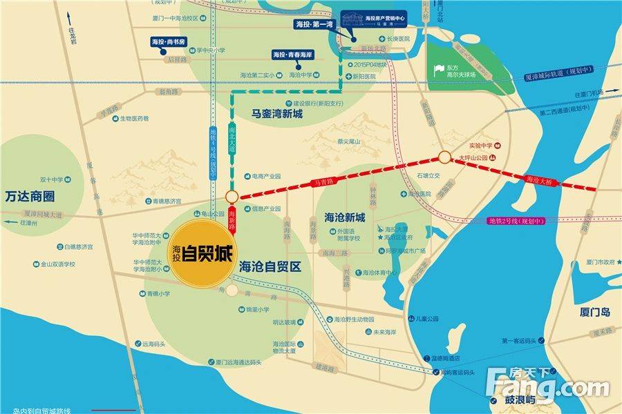 海投自贸城均价28000元/平海投自贸城位于海沧南部临港新城,规划3000平商业及生鲜超市。建面约58-99㎡1至3房高层现房在售,均价28000元/㎡。项目区域内有规划的地铁4号线临港新城站,周边有阿罗海城市广场、天虹商场、新都汇等商业