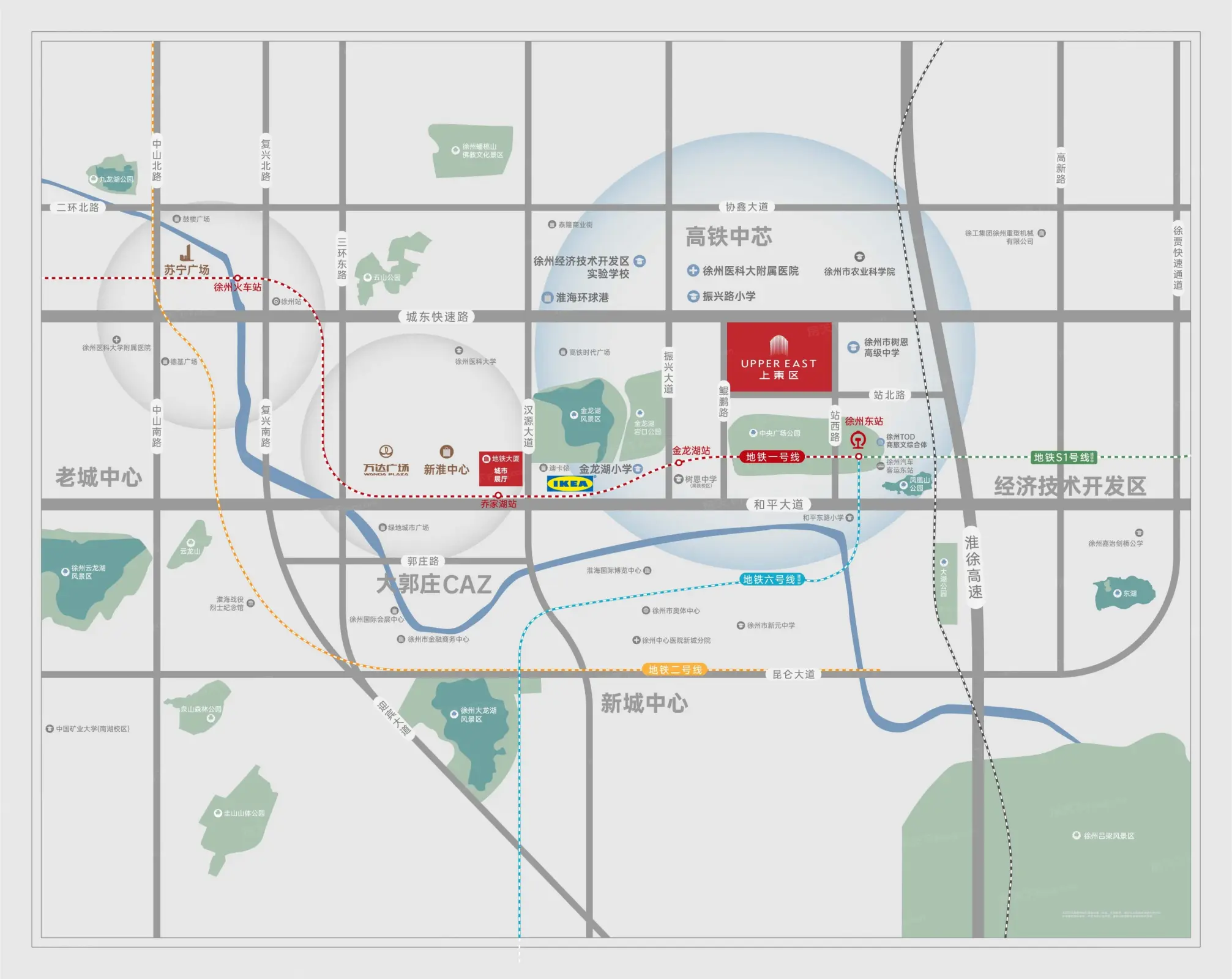 上东区。项目为小高层,高层板楼。共986户。绿化率33.9%。容积率2.23。上东区楼盘地址:徐州高铁站旁,鲲鹏路与站北路交叉口。主推户型95㎡,115㎡,125㎡。上东区项目距离1号线徐州东站951米。敬请关注。上东区售楼处电话为:400-176-0760...