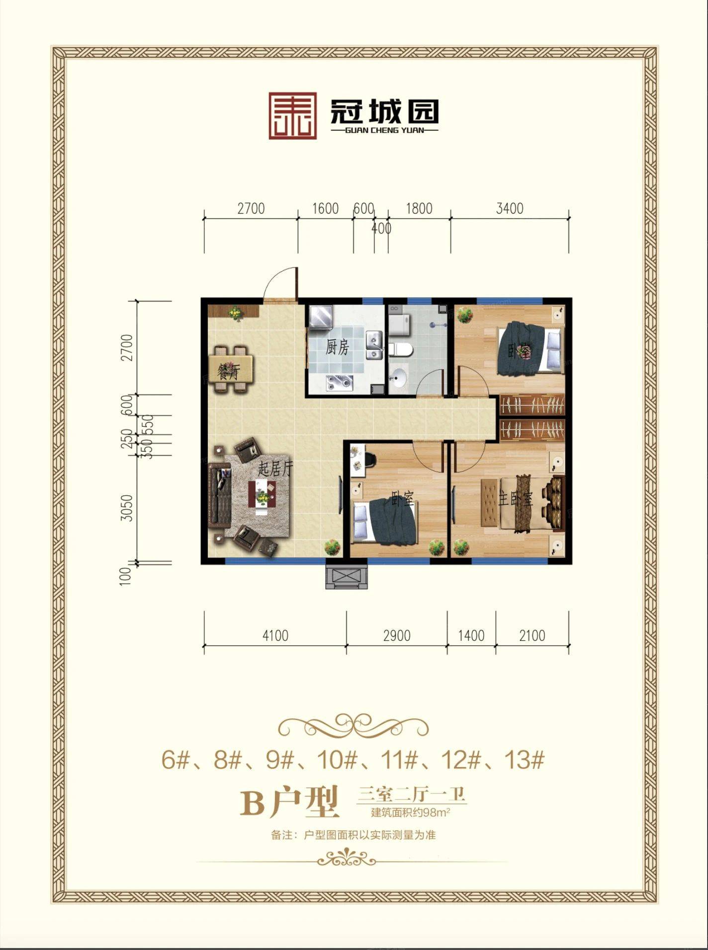 巨泰冠城园。巨泰冠城园项目为多层,小高层,高层。巨泰冠城园楼盘地址:松山物流园区雨润二期南。毛坯交房。容积率2.5。巨泰冠城园主力户型为88平-136.5平2居-3居。共1164户。松山区第27小学和第13幼儿园,雨润农产品市场,市蒙医中医医院。绿化率36.5...