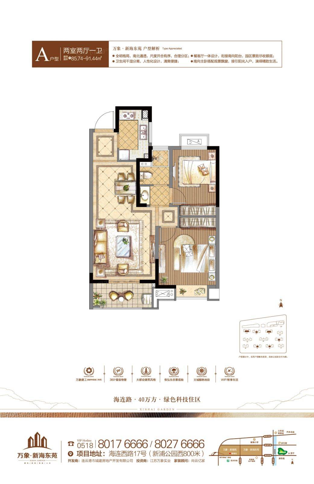 万象新海天成2022。普通住宅价格待定。项目规划建设1439户。绿化率31%。万象新海天成楼盘地址:海连西路17号(新浦公园西800米)。万象新海天成毛坯交房。物业费:1.1元/㎡·月。容积率2.82。万象新海天成项目为高层,超高层。敬请关注。万象新海天成售楼...