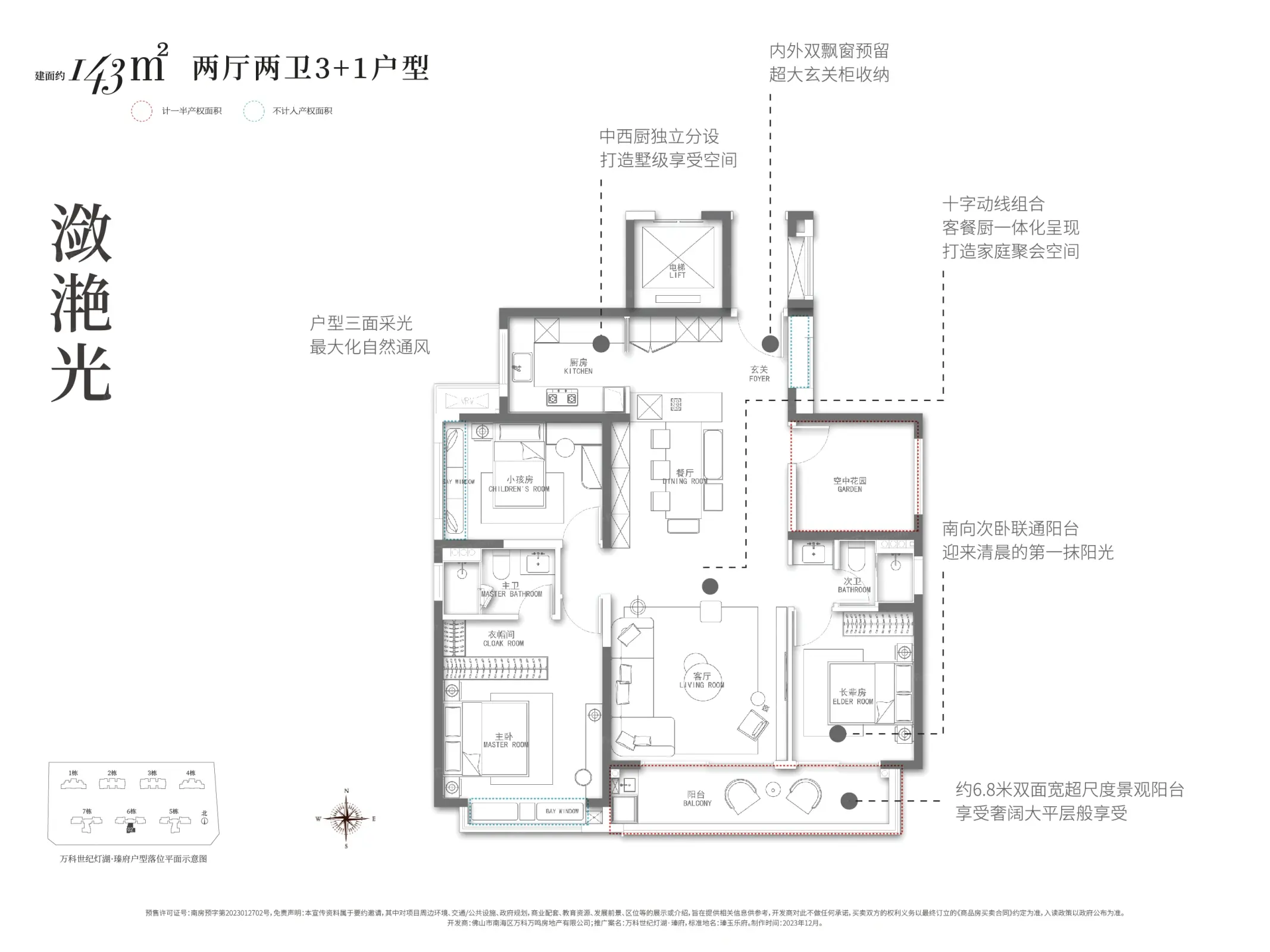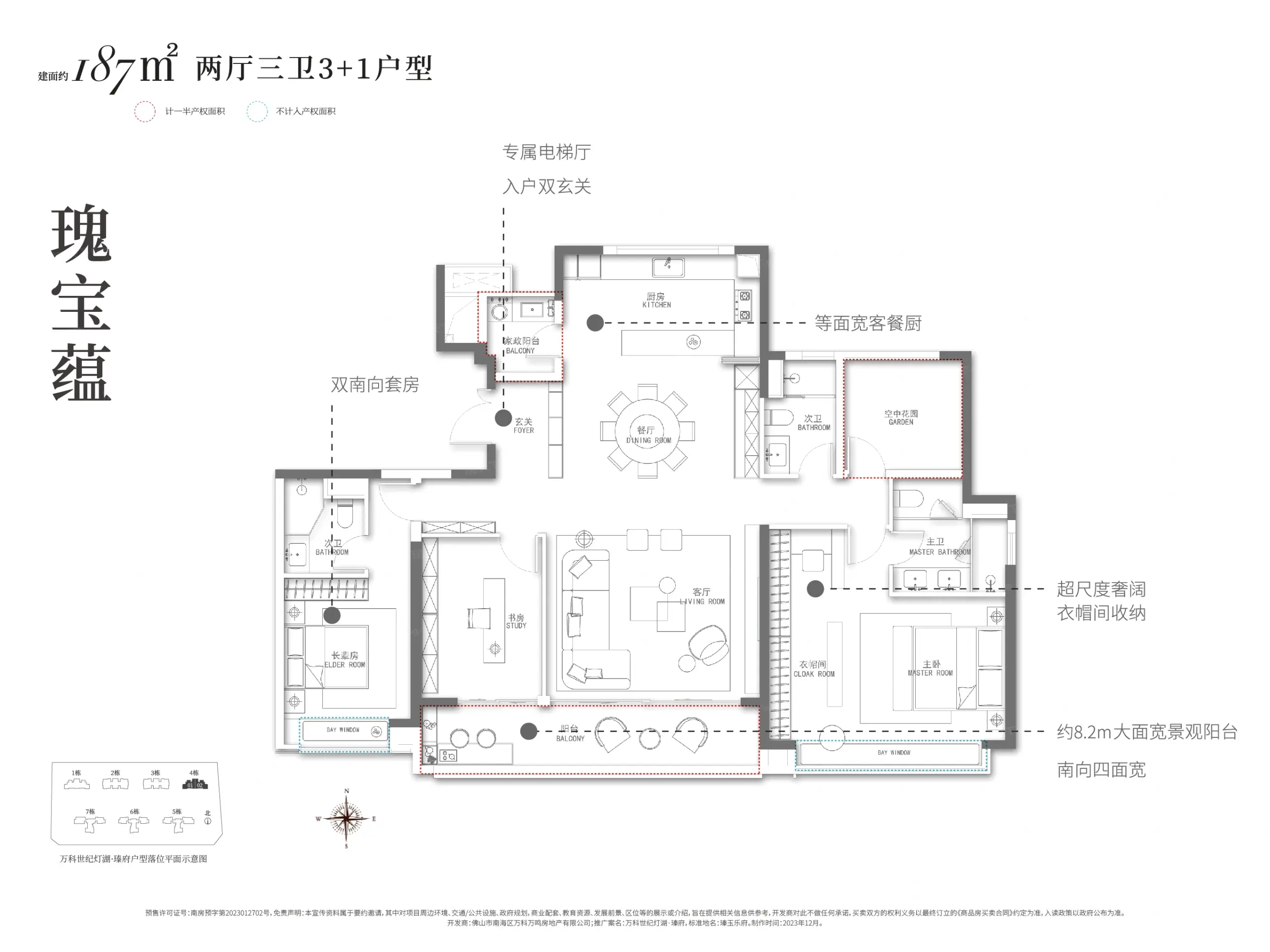 万科世纪灯湖·瑧府项目位于佛山市南海区桂城街道华翠北路9号。项目在售高层住宅产品,户型主推建面143-237㎡大户型单位,带装修发售,均价45000元/㎡,预计2025年9月交房。