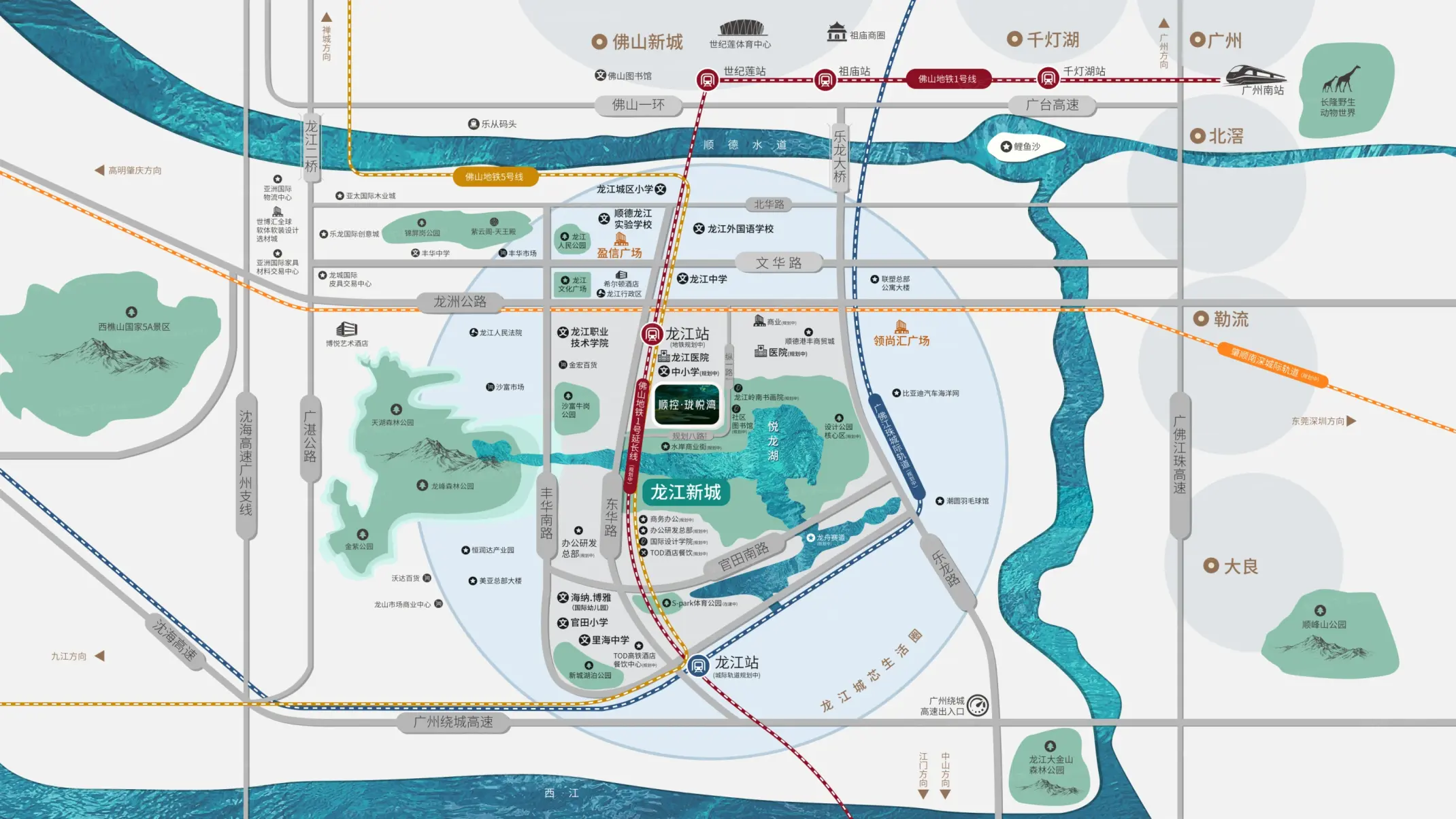 顺控·珑悦湾项目在售7座和8座高层大户型一线湖景住宅产品,楼高26层,产品主推建面约248-288㎡大平层单位,带简单装修,均价12000-13000元/㎡,预计2026年9月交房。项目位于佛山市顺德区龙江镇文华路,属于龙江新城板块。