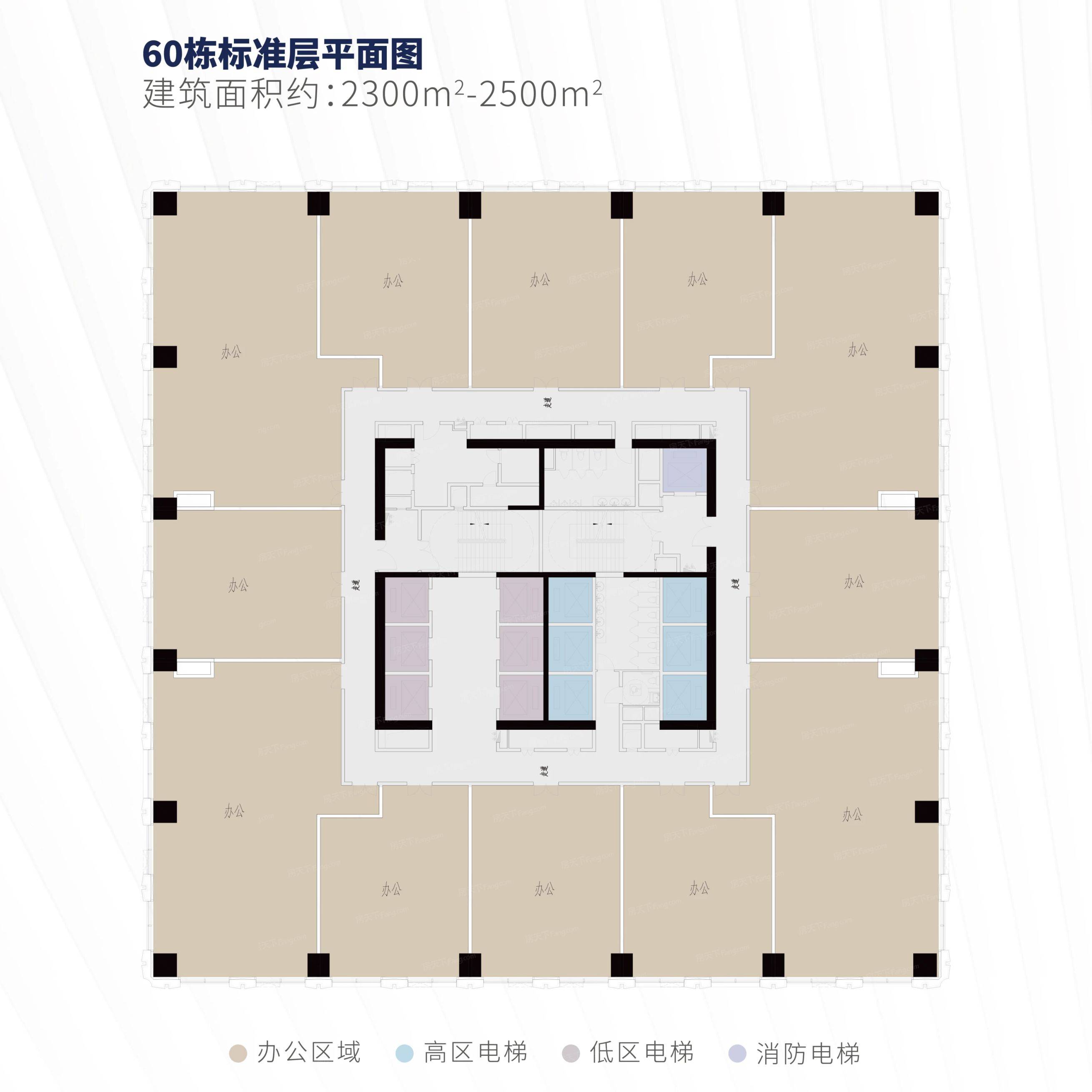 | 楼层状况: 负2~负4层为车库;负1层为商业;首层为办公大堂和商业;2~5层为裙楼办公;6层为架空层;7~30层以上为标准层写字楼(其中10层、21层为避难层) |
