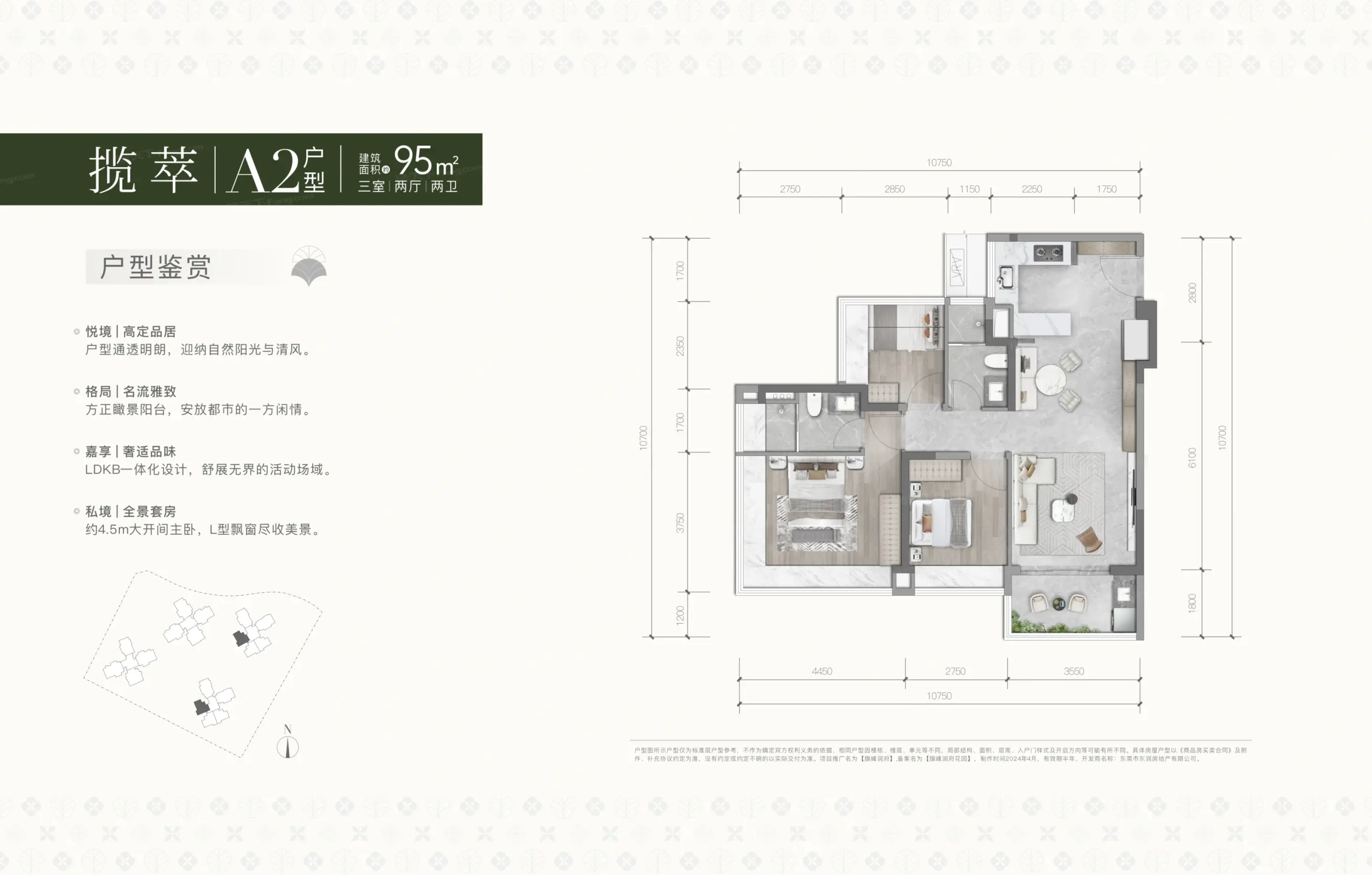 旗峰润府高区样板房已实景图已发布,旗峰润府目前在售中,项目主力产品为建筑面积约95-149㎡的三至四房住宅洋房,当前在售均价40000元/㎡。旗峰润府位于东城街道东莞大道与鸿福东路交汇处,项目共规划有653户,欲了解更多项目详情请咨询相关置业顾问。
