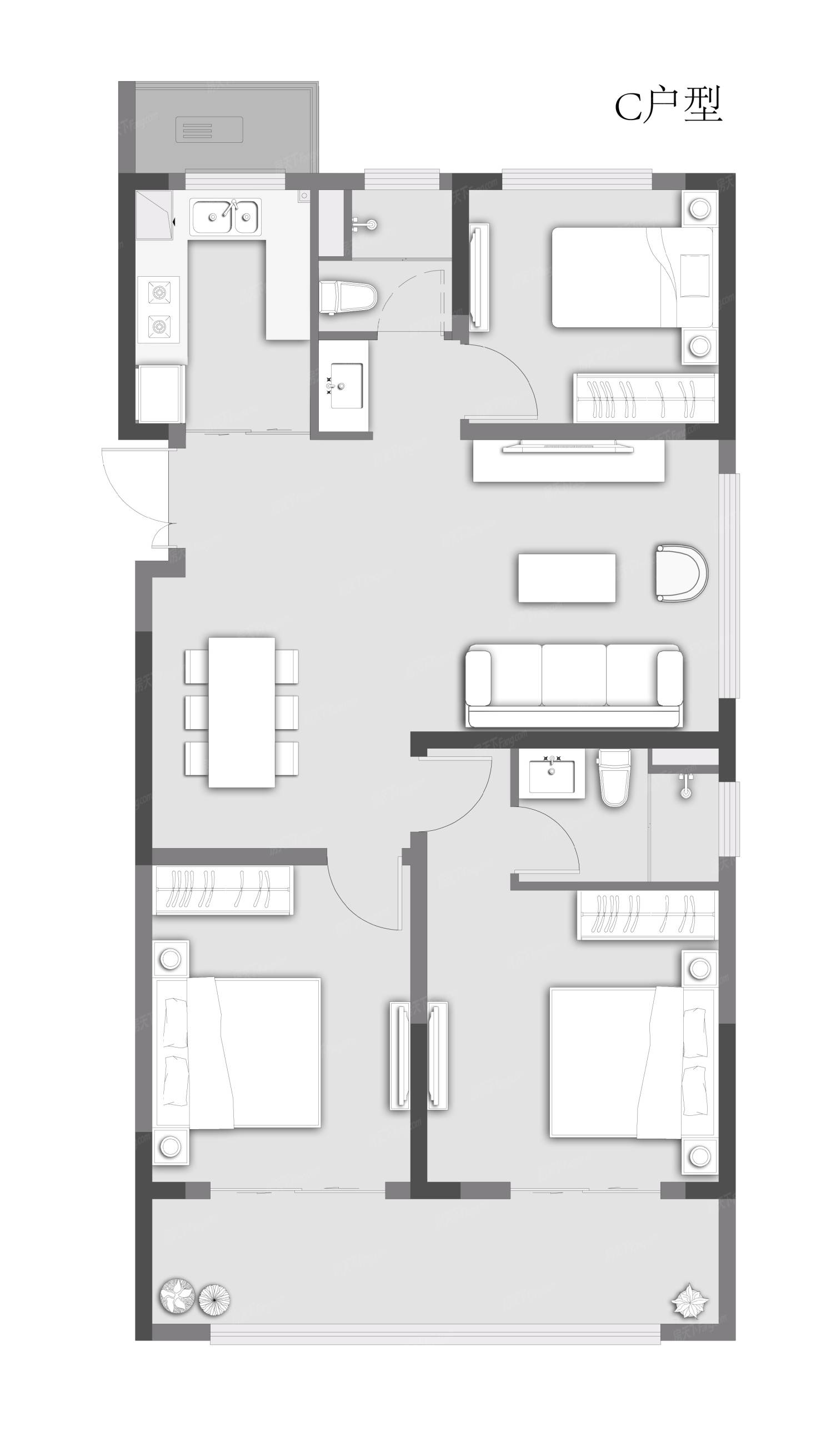 | 楼层状况: 当期开发4幢高层,2#楼33层,3#楼33层,4#楼33层,5#楼33层,户型101m2、119 m2、130 m2、141 m2 |
