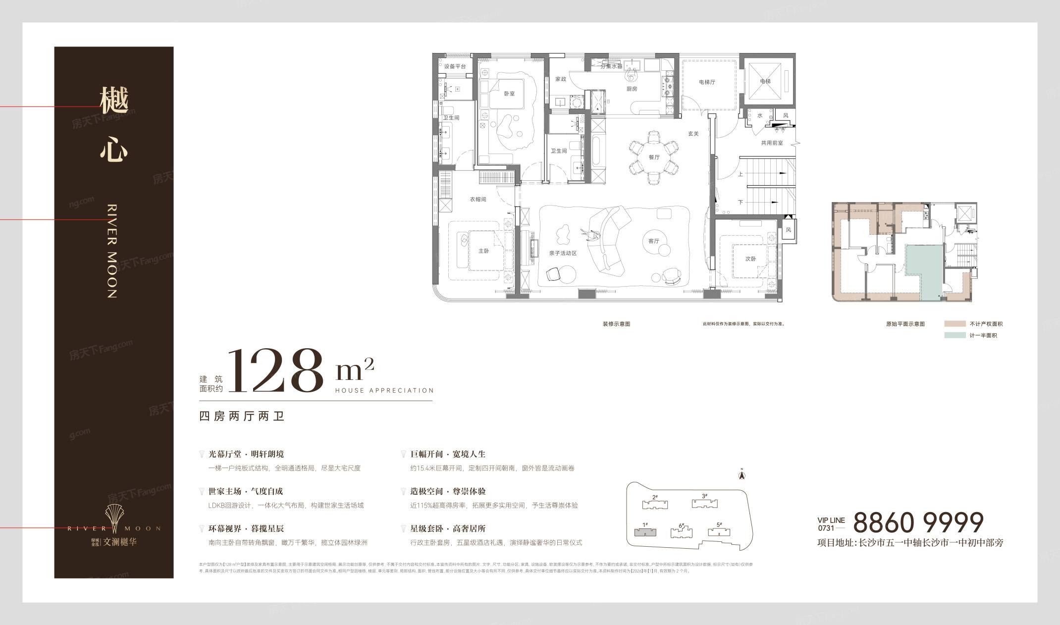 绿城金泓·文澜樾华项目共规划5栋住宅产品,首开预推1#、2#,建面128平-226平毛坯新规产品。