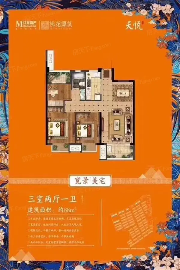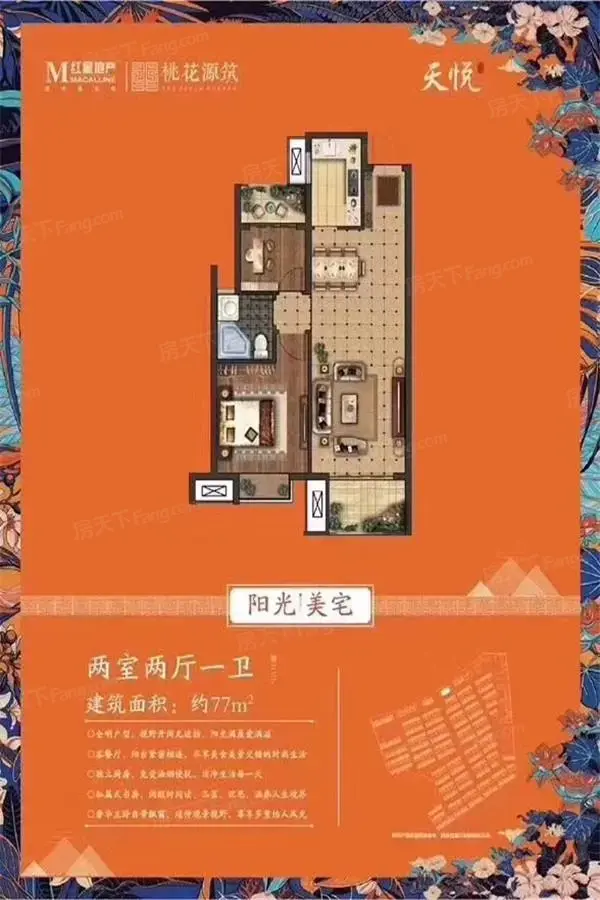 桃花源筑目前洋房全部楼栋都已开出,7-9层,1梯2户,建面约85、95㎡,均价8500元/㎡,预计2022年6月底毛坯交付。 另在售少量高层房源,21F,2梯4户,户型建面约88㎡,均价7500元/㎡。