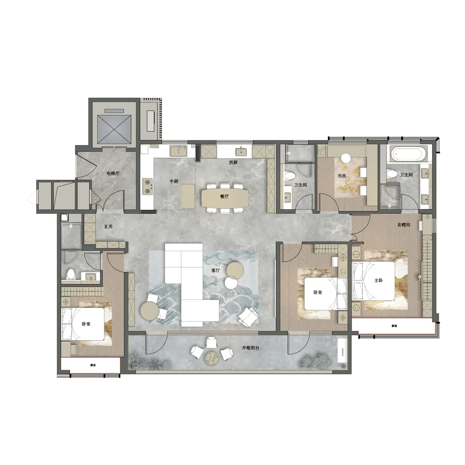 项目所有楼栋均已加推在售状态,在售建面约160㎡和188㎡、235㎡房源,预计2026年底交房。